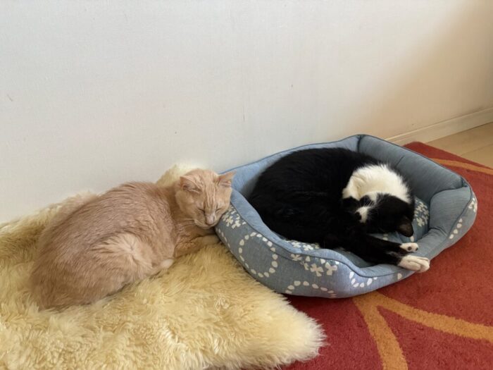 ネコたちはそれぞれお気に入りの暖かい場所で寝ています