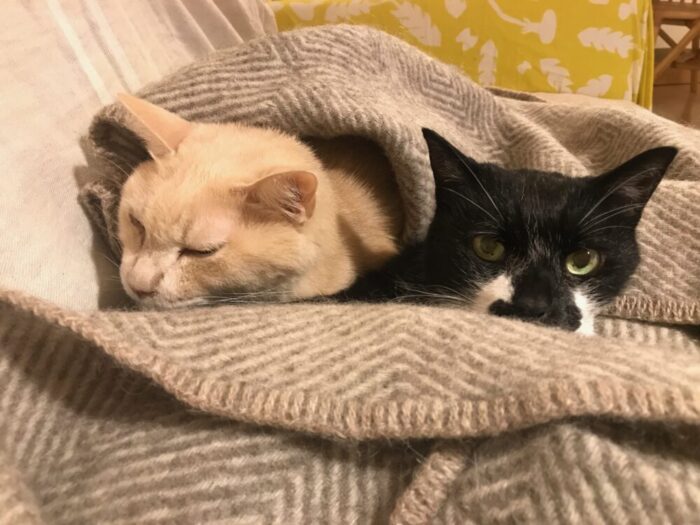 仲良しの元保護猫チョコとラテ